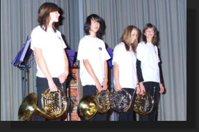 Abends zusammen auf der Bühne ein. Das Hornquartett spielte ein Stück von Mozart und