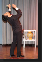Keulen, Zigarrenkisten und Ping-Pong-Bällen hat er das Publikum begeistert. Die Komüka-