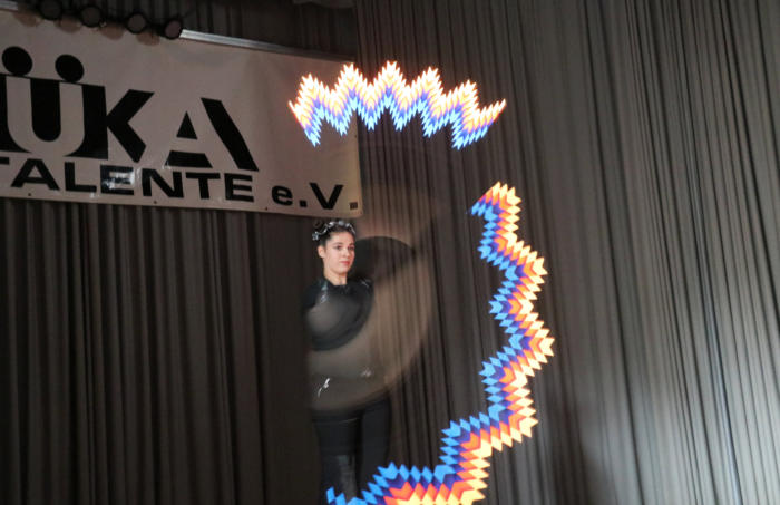 erzeugte sie unzählige Lichtgebilde und zum Schluss das KOMÜKA-Logo.